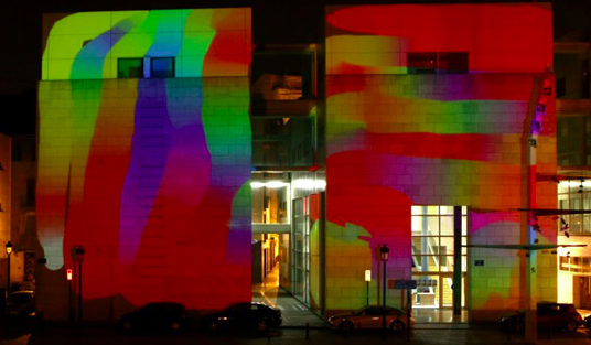 Esta acción no dañó el edificio ya que se trata de una video proyección de grandes dimensiones. Para realizar las pintadas o mensajes utilizamos una herramienta digital llamada Tagtool.